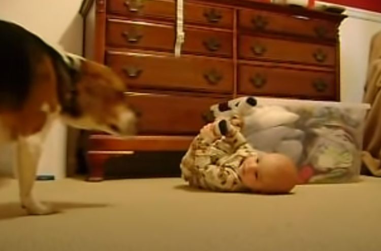 All their fears are quickly alleviated when the beagle immediately falls in love with the child, as shown in the video below.