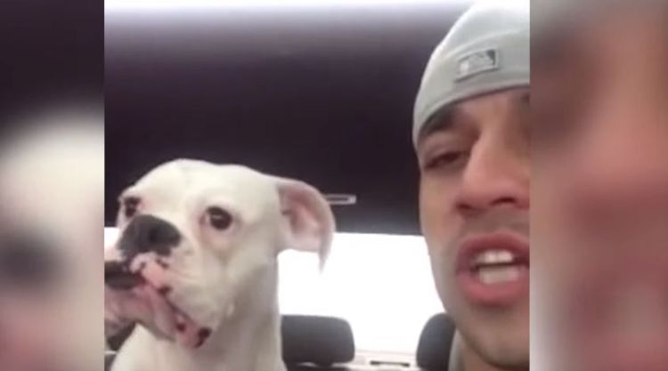 No one likes to leave early from a good party, and a fun-loving dog is no exception. Felony, a white female boxer, was brought in early from a trip to the dog park because her owner wanted to watch a Texans game on television. The owner (identified on YouTube as fgemellaro) caught her on video voicing her objection, getting louder when he tells her to "shut up."