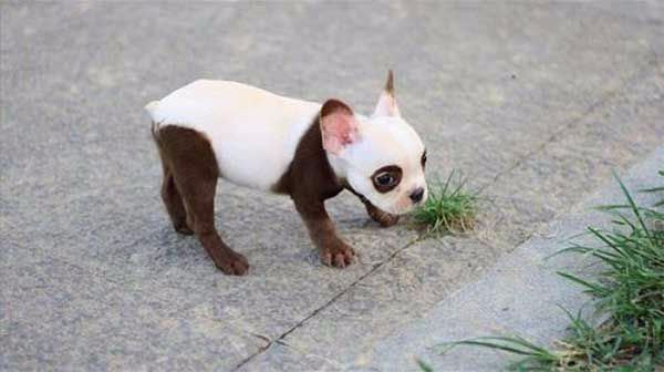 6. The coloring on this French bulldog is pretty unique. With his adorable pointy ears and brown eye patches, he almost looks more like a Panda bear than a puppy!