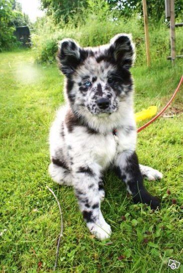 12. This sweet pup is a mix between a Pomeranian and an Australian Shepherd. The stunning black and white coloring of this dog makes the dog look more like a wolf.