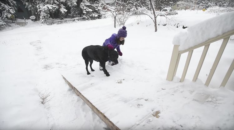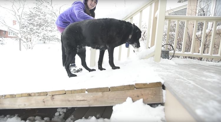 Who says you can’t teach an old dog new tricks? Tashi, an aging Labrador Retriever belonging to Karen Dimetrosky and her eleven year old daughter Maddie, has learned to use a wooden ramp that bridges the front steps at their Boulder, Colorado home. Before the ramp, Tashi’s family had to carry the heavy dog up and down the steps.