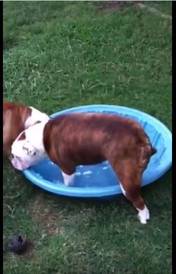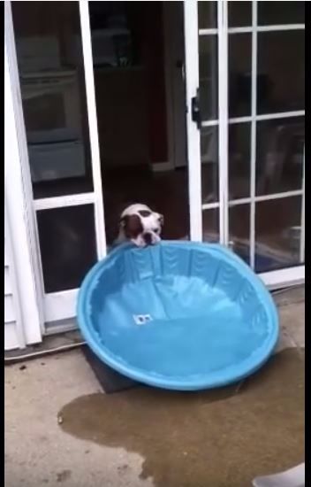 This pool is actually the perfect size for a bulldog like Gus. According to Bulldogs World, dogs that are low to the ground with short legs need shallow water, and should never go near a large body of water unattended. Of course, as his mom soon found out, swimming was not what Gus had in mind.