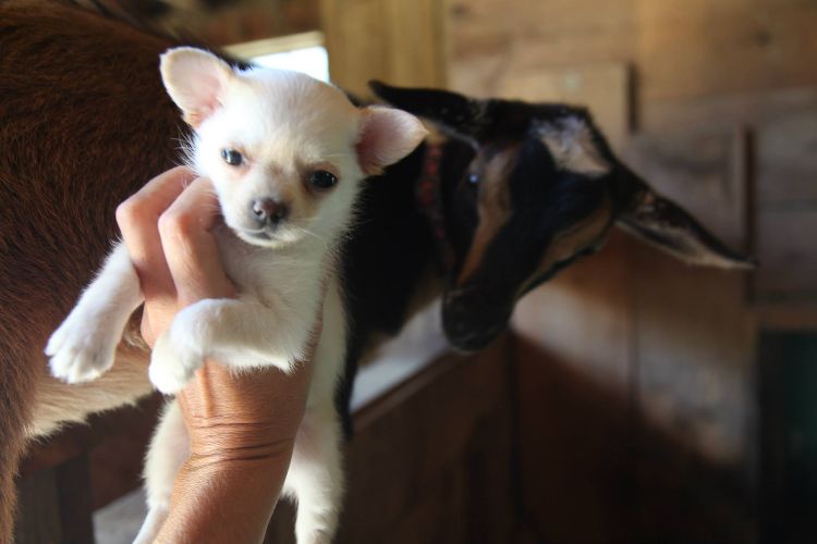 Meet Lola, an 8-week old Chihuahua puppy, who was feeling a little shy and out of place on the farm. The farm's two adult dogs, an English mastiff and a pug, weren't very interested in playing with the new addition, so little Lola started searching for new friends.