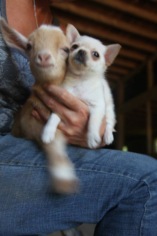 It's heartwarming to see two different species immediately setting aside their differences and enjoying each other's company. We're so happy Lola has made new friends and a found a forever home at the farm. You can follow Lola's adventures as she grows up on her Instagram page.