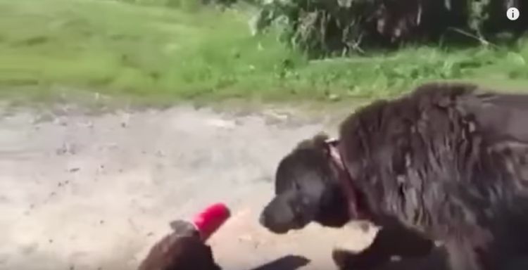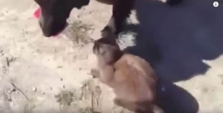 Enter the hero! Like Zorro in his black raiment, this beautiful black dog quickly discerns the problem and decides to step in and save the day (not to mention the cat).