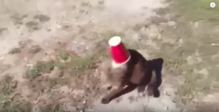 Obviously cats don’t know anything about physics, as she seems to think her constant backwards movement will somehow dislodge the cup from her poor little kitty head.