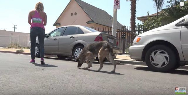 The dog ate every morsel of food on the ground until she was completely clear of the car. At this point, Arturo slowly stood up and began to walk away, hoping the dog would follow. And indeed, with the promise of more food, the dog did.