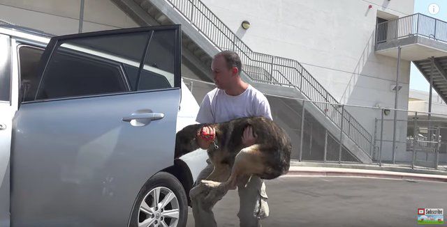 Amelia was hesitant to go into the rescuer's car, so Hagar carefully lifted her up and placed her in the back seat.