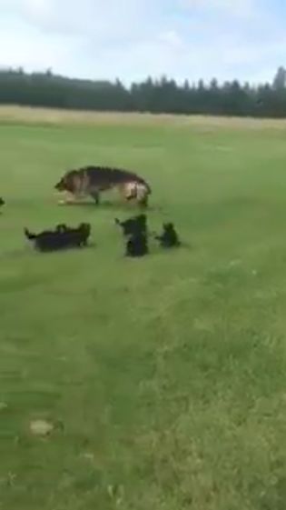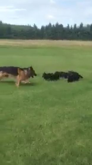 Watch this Mama Shepherd outmaneuver her puppies as she wings it through the grass. Share it with your friends, too. Then put yourself in Momma dog's place and ask each other, "How would you calm them down?"