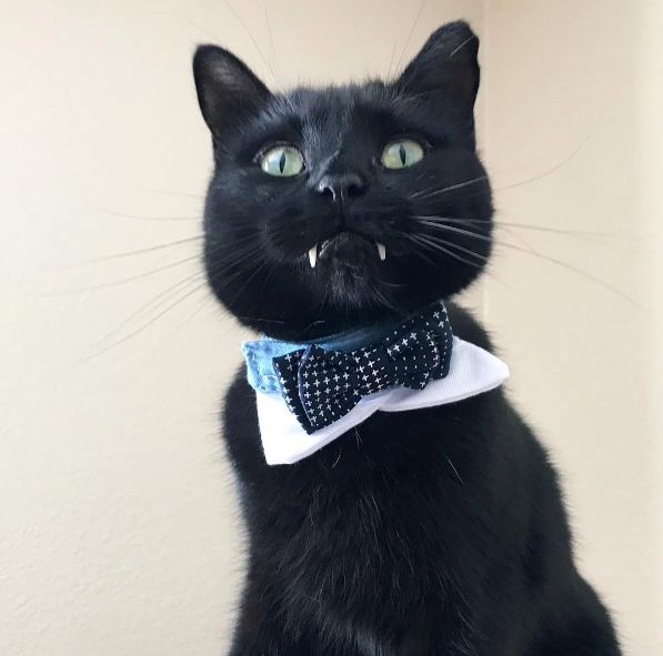 Originally intending to rehome him, Nicole soon fell victim to his "vampurr" charms and decided to keep him. And then his fangs began to grow.