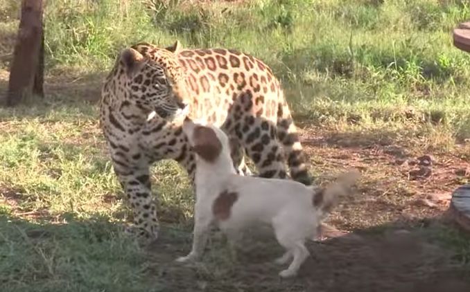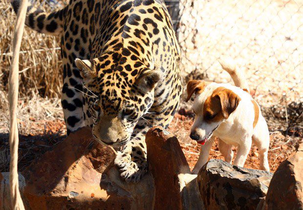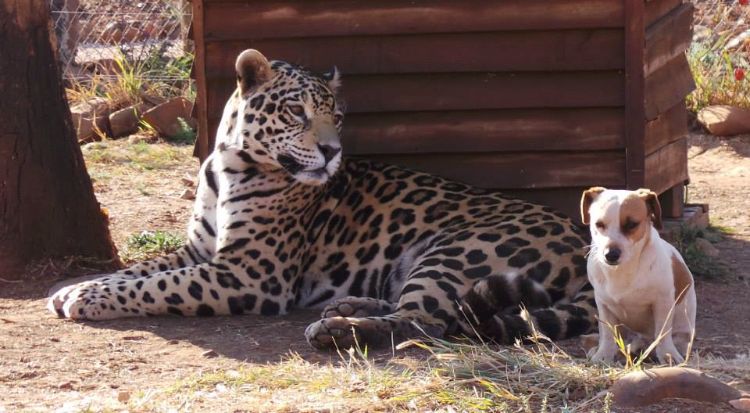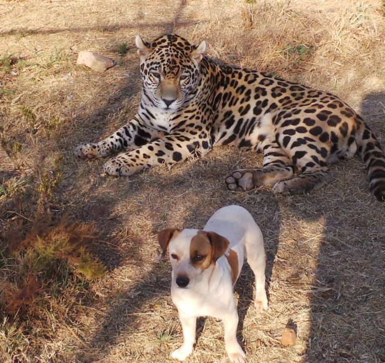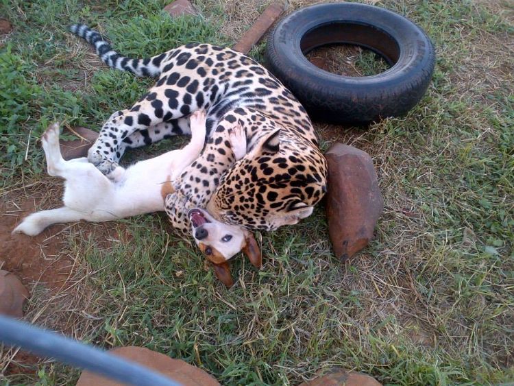 "The jaguar obviously has more power, so if he is hurting him [the dog] or anything, the dog will growl or bark, and the jaguar knows when to stop."