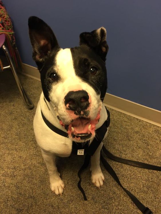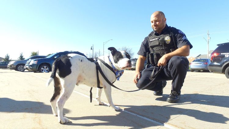 Mickey was a six-year-old bull terrier mix who needed a home. He had been at the Nebraska Humane Society shelter for over four months, and the time spent in the shelter was beginning to wear on him. That's when the La Vista Police Department proposed a partnership with the humane society, and through the creation of a unique program, Mickey found his forever home.