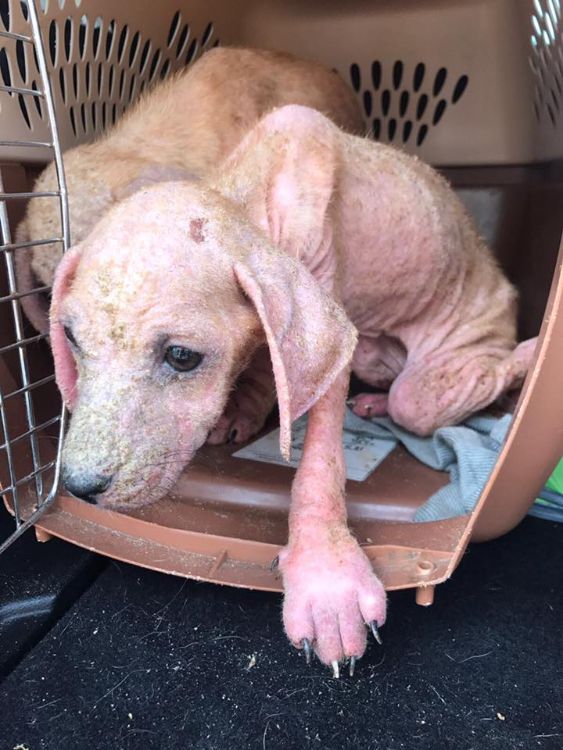 The AMA Animal Rescue representatives were horrified by the pictures that they saw of the puppies' conditions. They wrote on their Facebook page, "What [Souls of Santos] showed us was so disturbing that we couldn't even cry from the shock. We saw 3-month-old defenseless little puppies covered head to toe in scabs, raw skin on their paws, and covered in patches of skin hanging and about to fall off. And without help, they wouldn't have lived to be even 6 months old."