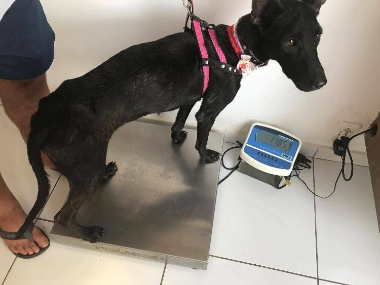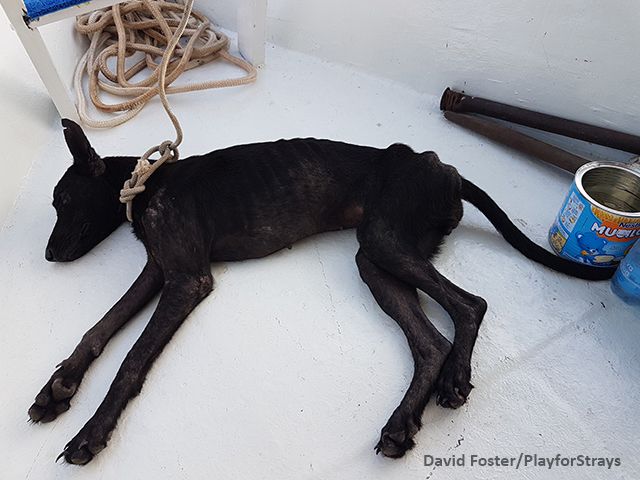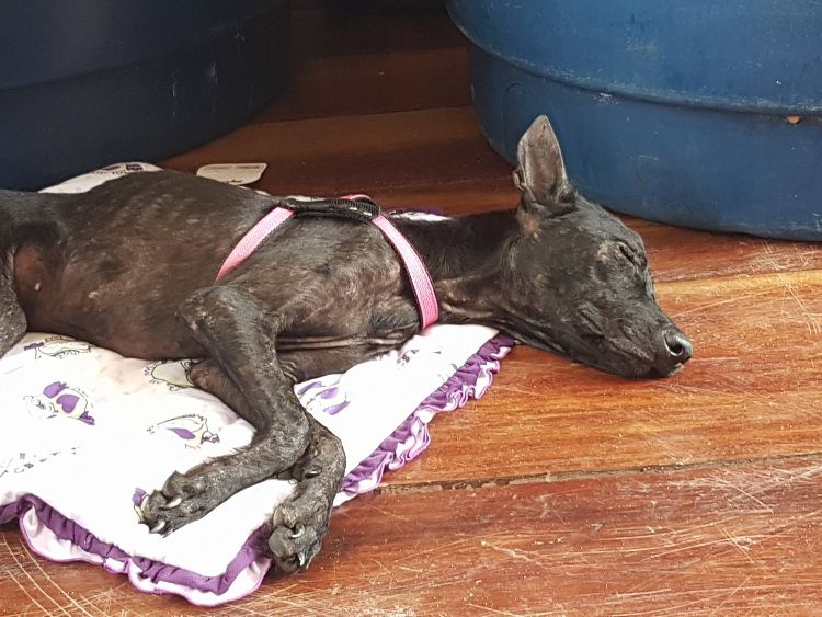 Foster named the black dog Negrita, and her condition proved that she was only a few days away from death. She could barely walk to Foster; she was emaciated and covered in ticks and fleas. Negrita also showed signs of abuse as her ears were cut and sliced. The dog was so close to death that vultures had taken to circling her overhead.