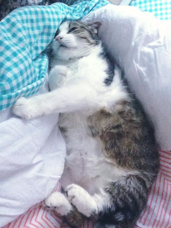 According to Karyn, "She can only turn to the left, gets in the way, wakes up in a new place every single day (memory loss), and doesn't always make it to a litter box, but she's my Britches and she's perfect."