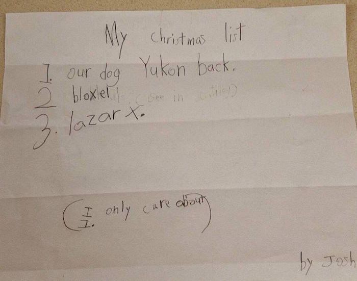 The Hayes family was overjoyed to hear about Yukon's rescue. One of the Hayes' children had even penned a note to Santa, asking for the return of his beloved dog. “One of his (four) children had even written to Santa asking for Yukon back for Christmas. We’re so glad Santa was able to come through!” said BC SPCA North Peace Branch manager Candace Buchamer.