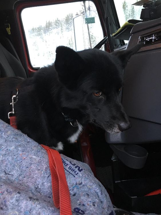 Volunteer Nick Stoneburgh, part of Alaska-based Carlile Transportation and Edmonton-based Capital Transport trucking, drove Yukon to the Hayes' home.