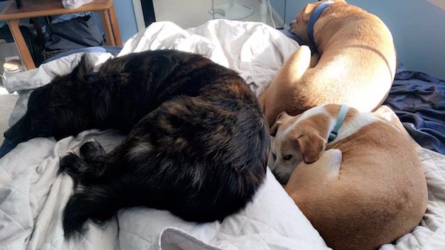 Back at home, Montana was delighted to find that there were two other furbuddies waiting. “Montana is very playful and social with other dogs, so she’s been having the time of her life since we returned home from our trip since there is always another dog around for her to play with,” said Emily.