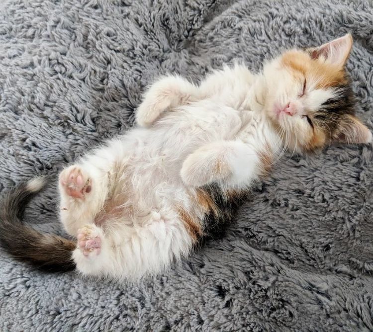 And she loves her food! @fosterbabycats explained, "We call this phenomenon 'baseball belly' - when a kitten eats as much as their tiny belly can hold."
