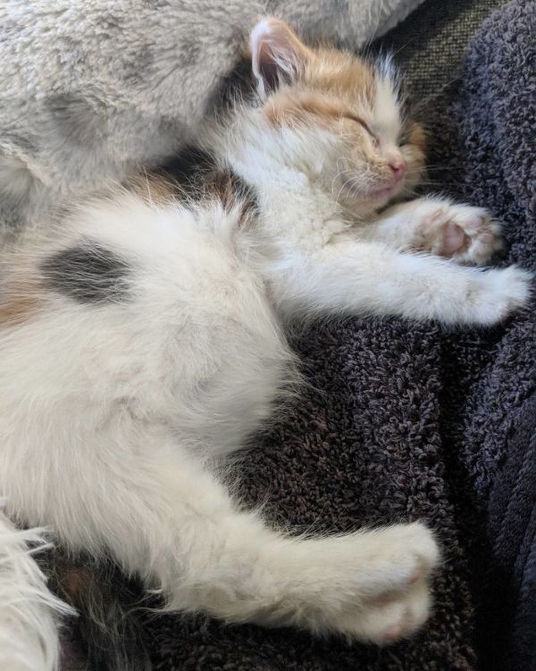 At the Humane Society, the kitten, called Molly, was given food and a few flea baths. Those first steps helped put some spirit in her step. Once she was stabilized and safe, Molly was given into the care of an experienced foster, @fosterbabycats.