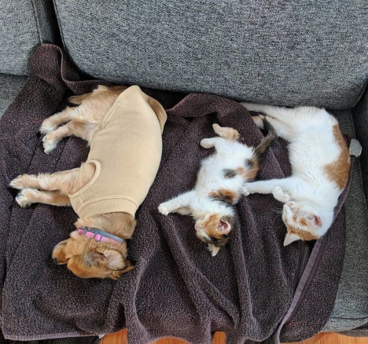 She has made friends with the other foster cats in the house...