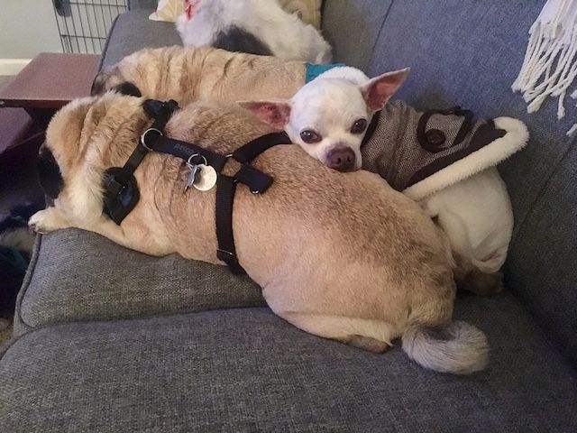 Marc and Kristen aren't at this time looking for homes for the dogs in their care. Turns out, these senior dogs fit the lifestyle of the Peraltas perfectly. “They don’t need long walks or hikes and they are perfectly happy sleeping on your lap for most of the day. We think vintage (senior) dogs are amazing and they shouldn’t spend their last months or years in a shelter,” they said.