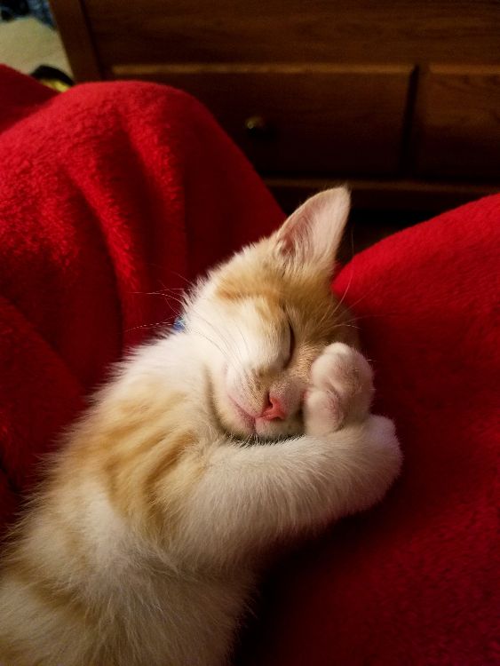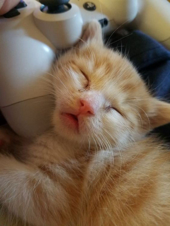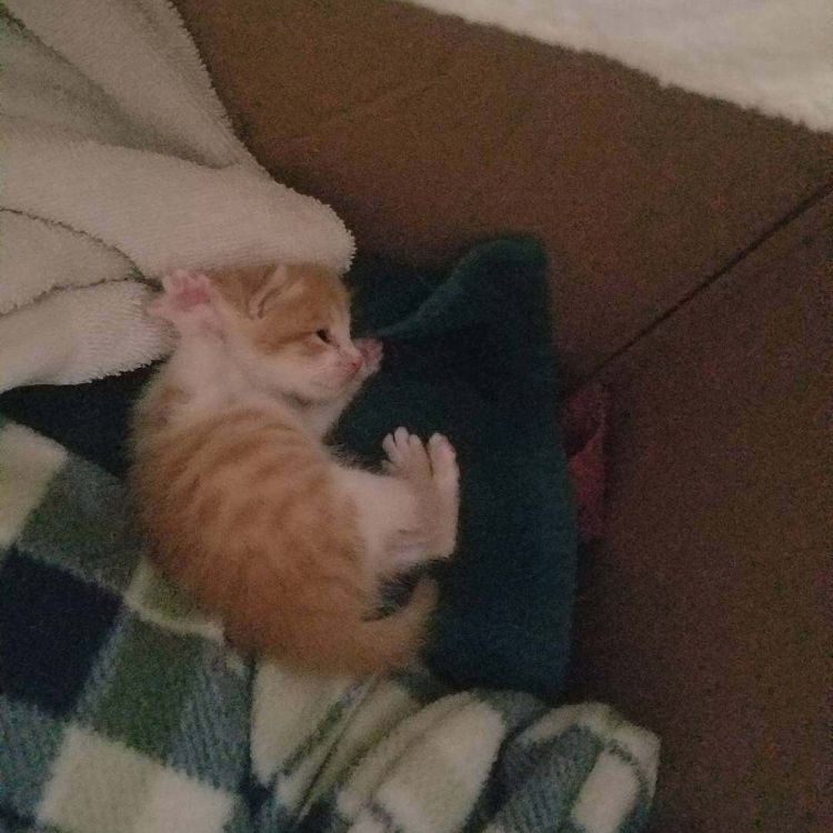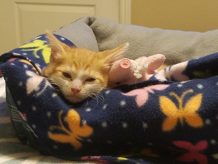 First, the kitten had to endure a couple of flea baths because he was riddled with the parasitic pests. Then came the impeccably timed, 24-7 feeding schedule that babybrobeans had to follow to make sure the kitten survived. "It was an adventure in and of itself. When he wasn't screaming for food, poops, or attention — he slept on everything you wanted to use," she recalled.