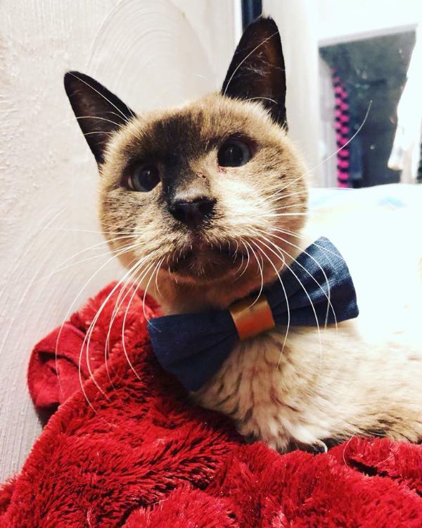 As an abandoned stray, the Siamese cat with the crossed eyes was caught by animal control and send to a kill shelter. She waited, her time rapidly running out, when the rescuers from The Odd Cat Sanctuary in Salem, Massachusetts, heard about the cat with the unique eyes and saved her life.