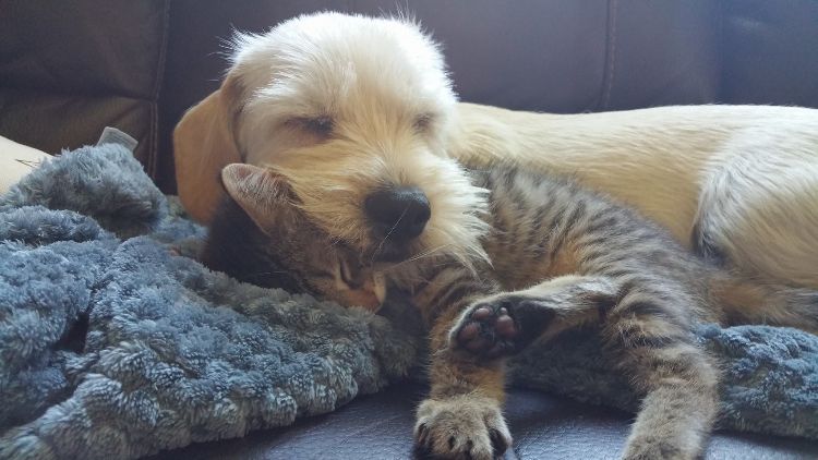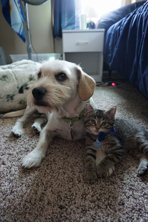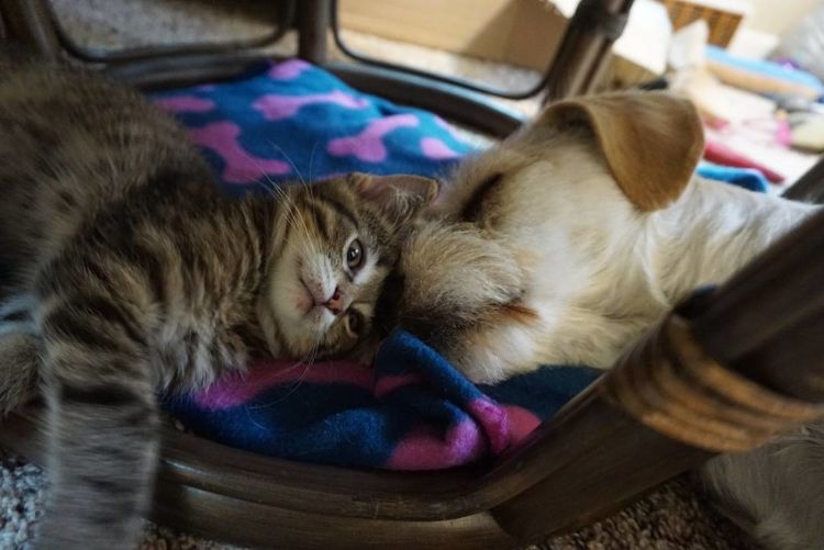 Kramer is now getting bigger, and his balance has improved, but that hasn't changed the deep friendship between cat and dog. "Winston still is very protective of Kramer and they are the best of friends. They wrestle and snuggle all of the time," Springer shared.
