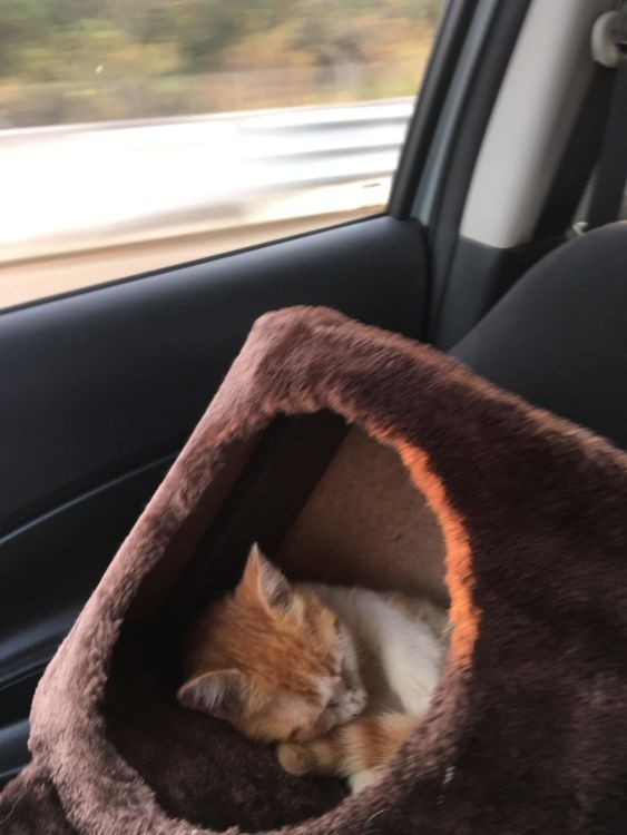 According to researchers from the University of California, Berkeley, ginger cats are more likely to be adopted from a shelter than any other color. White cats are perceived as aloof and unfriendly, black cats are seen as evil and unlucky, and tabbies are viewed as intolerant. When reddit user danknissan decided to flee hurricane Irma in September, he also decided to stop by a local shelter and take a feline friend along for the ride. And who did he pick? An orange and white kitten.