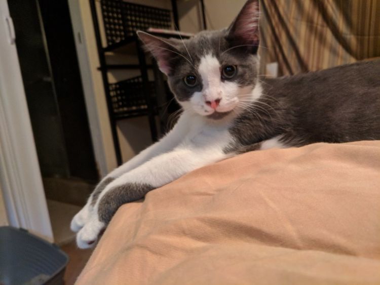 A beautiful grey-and-white kitten was also a victim of Irma. Bunny was a feral kitten who was caught on a fence in the storm. A friend of danknissan saved him in Tampa, Florida. He needed a new home.