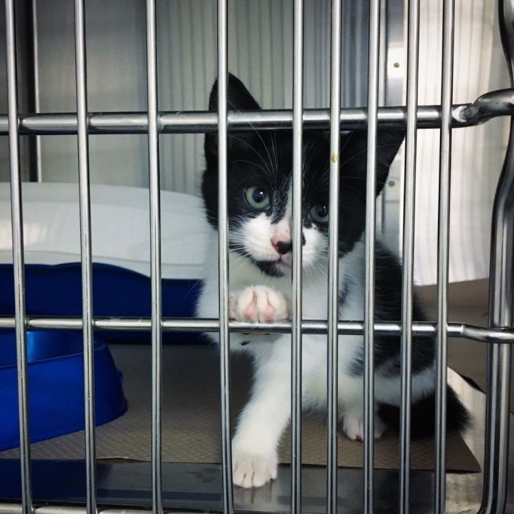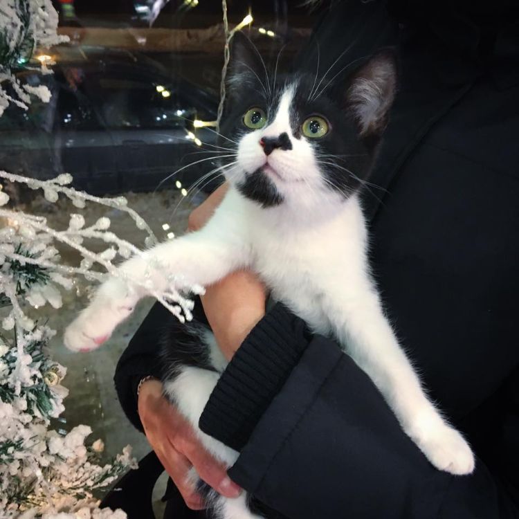 Wandering alone and homeless through a field, a little black-and-white kitten found the nearest home and scratched at the door until someone opened the door. The compassionate owner let the kitten in and then took her to the Chatons Orphelins Montreal rescue in hopes that the kitten could be found a permanent home.