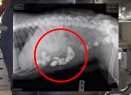 Upon X-ray examinations, the veterinarian determined that Stewie had become so desperate for food, and was so unwilling to leave his family's home, that he had resorted to eating rocks to stay alive.