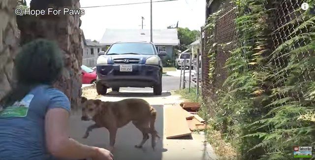 This situation was Stewie's reality when Los Angeles' Hope for Paws rescuers Lisa Arturo and JoAnn Wiltz drove to his home to help him. They found Stewie hiding in a crawl space, but every time they tried to approach him or tempt him with food, he ran away in fear. The senior dog had been on his own for so long that he had forgotten how to trust people.