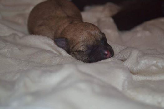 Someone had left the little dog in a wire crate on the doorstep and abandoned her there. She had already delivered one puppy when the police and rescue got there. Sadly, it was already dead.