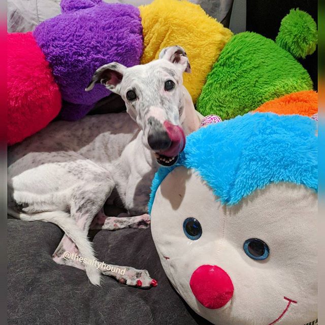 Percival adopted Salt from the Gumtree Greys Rescue and Rehome Greyhounds organization. She knew right away that Salt was the right dog for her family. “As soon as I saw Salt (as she was called) I was smitten,” Percival said. “I have a lot of cooking salts and flavored salts (about 14 types). It’s a bit of an obsession. So it just seemed so perfect that a dog called Salt would join our family.”