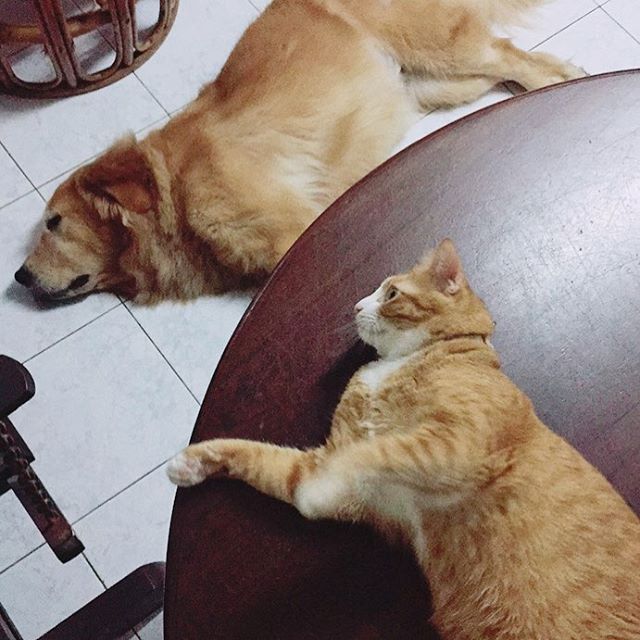 When they aren't out and about exploring the world together, Mamiao and Honey can be found cuddling with each other.