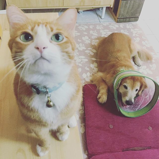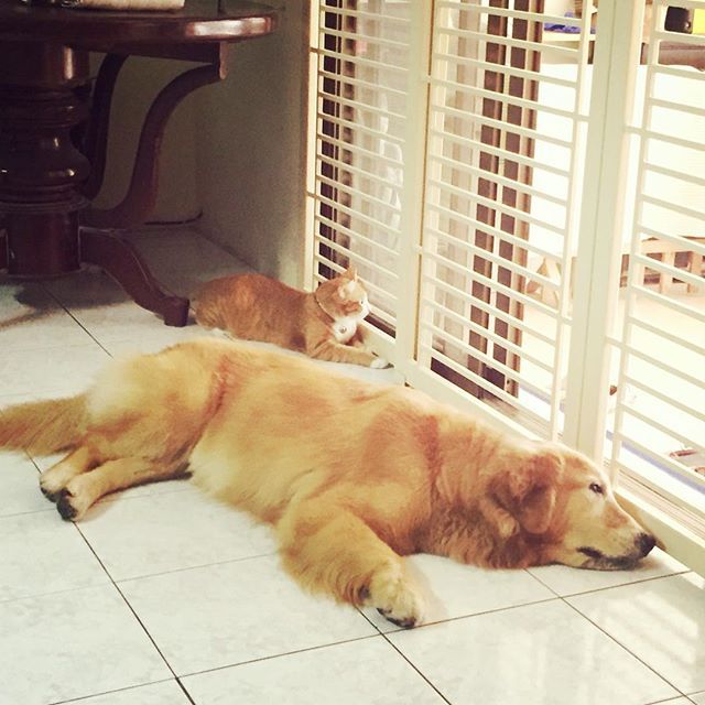 Honey was about two months old when his rescuer found him. The man took Honey to the veterinarian where the cat received a bath and treatment for his injured tail. Then Honey came to his new home where he was introduced to the family's golden retriever, Mamiao. The dog took one look at Honey and nuzzled the cat. From that day forward, Honey had his champion!