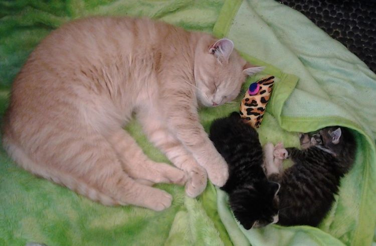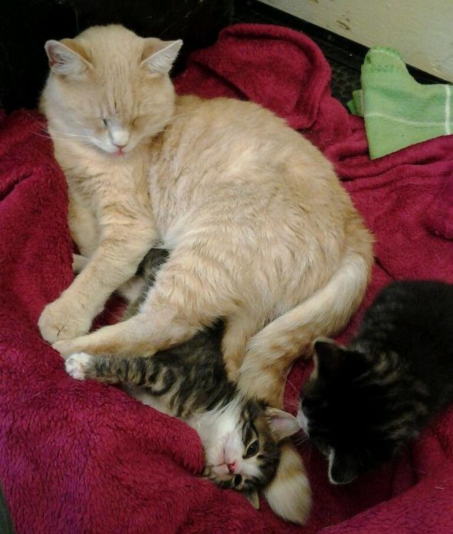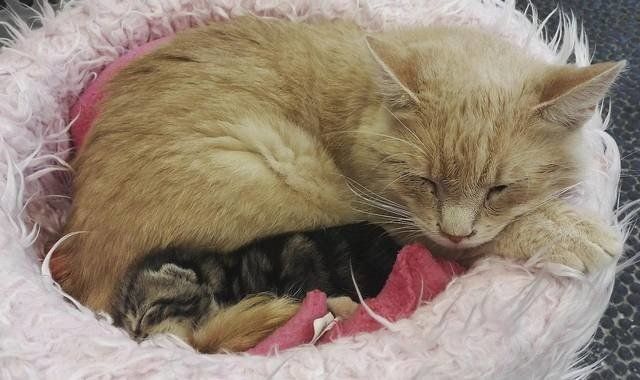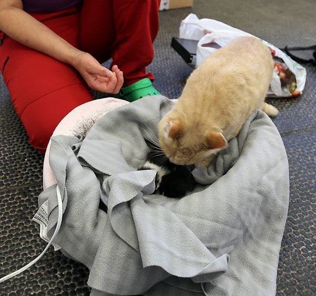 "At first she just stayed as a regular patient to get well, but soon we noticed how she cared for other patients," Lucie Havelka, a veterinarian at the clinic, related. Honey decided to become a nurse for a litter of kittens without a mom.