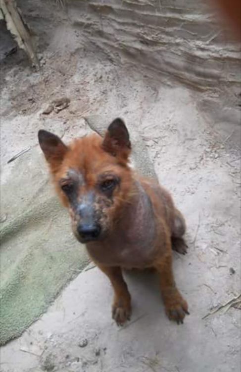 After trying several times without success, Karla finally managed to coax him out where she could get a good look at him. His skin was so bad he looked as if he had turned to stone. She knew she had to help him.