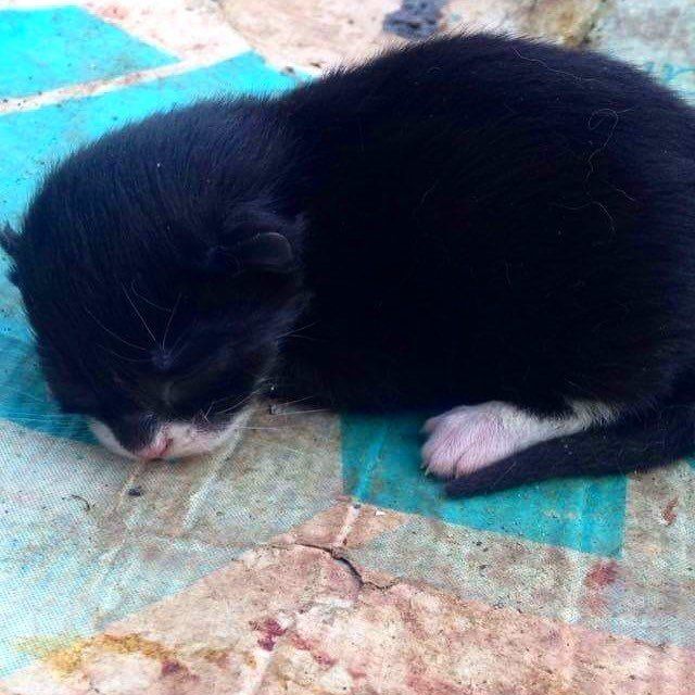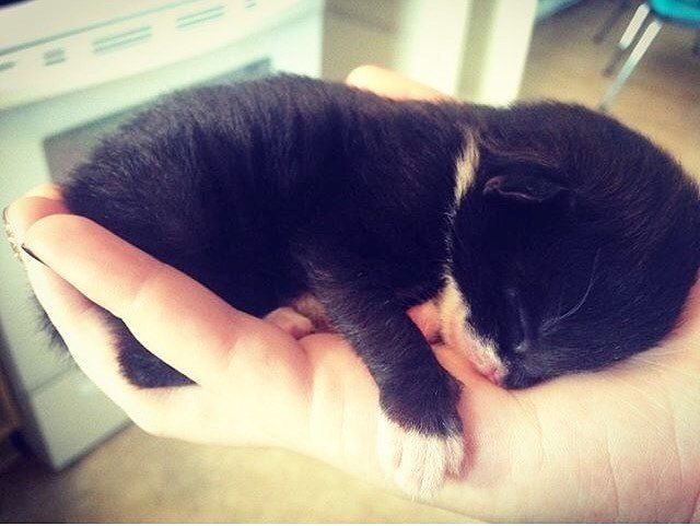 "When I found him I couldn't tell if he was alive. I started to feel panicked once I realized that he wasn't meowing any more. So I brought him straight to the vet. They said he was less than a week old and had been abandoned by his mother."