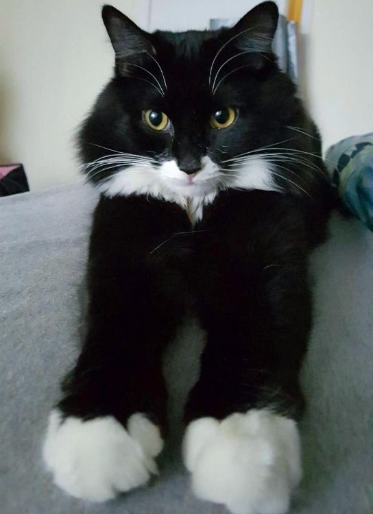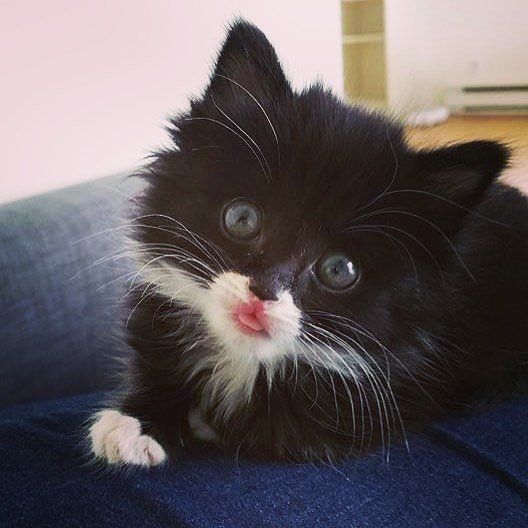 The tuxedo kitten grew into a beautiful boy who loves his mom enormously. "He is super spunky, likes to act like the man of the house. But when no one is around he still acts like my baby and cuddles up to me," Kelli says.