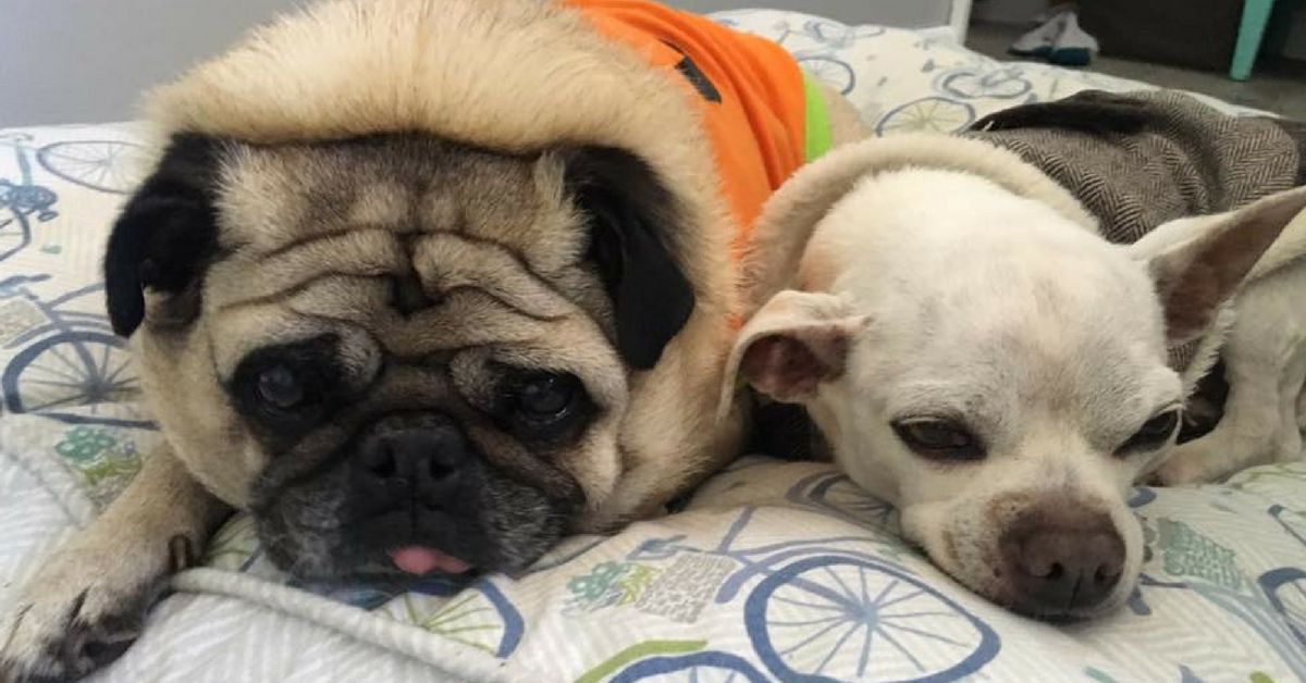 Teacher has a soft spot for special needs pugs so she took this blind one under her wing