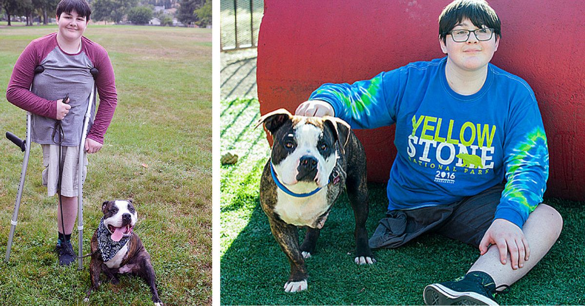 Boy had hip and leg removed to save his life from cancer makes a new BFF in a three-legged dog