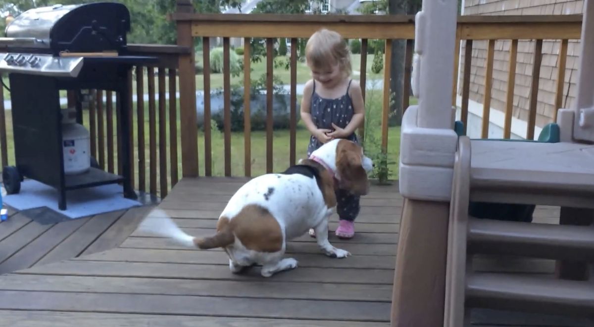 Little Girl Charlotte Dancing With Her Basset Hound Dog Zoe