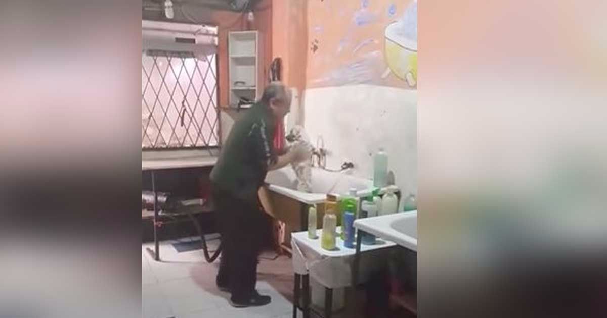 Pet groomer doesn't know he's being filmed, caught on tape having way too much fun at work
