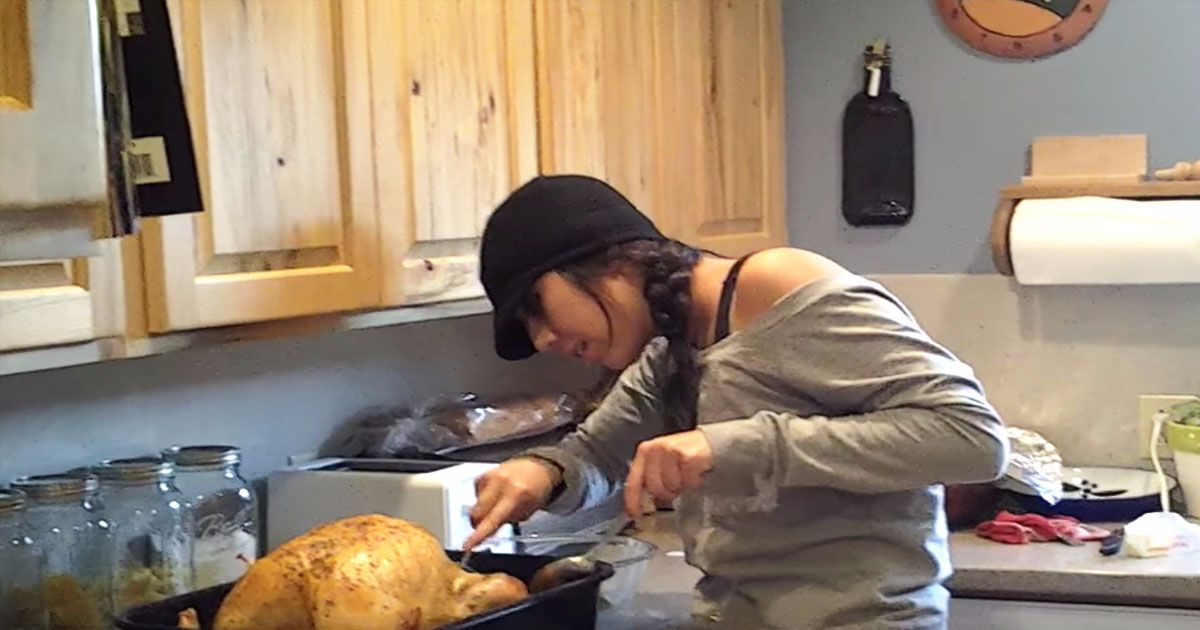 Mom films as daughter pulls something pretty unsettling out of turkey cavity