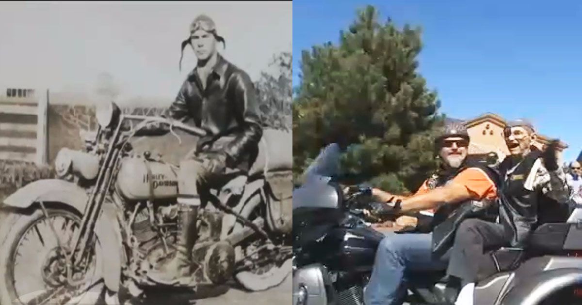 101-year-old biker enjoys one last ride, flanked by 50 fellow Harley lovers