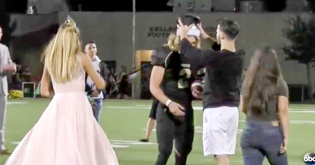 Quarterback named homecoming king makes crowd gasp when he takes off crown