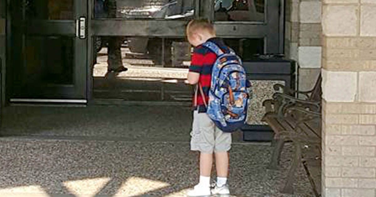 Mom sees son stop in his tracks as kids rush inside school, then falls silent